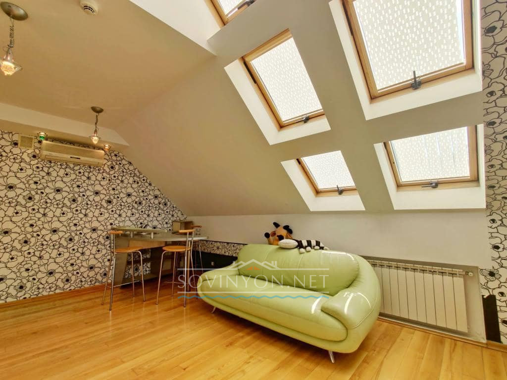 Красивый и уютный коттедж находится на тихой и близкой к морю улице. На большой территории с современным ландшафтным дизайном расположены: сам коттедж, два гаража, один из которых крытый и имеет выход в дом, большая летняя терраса, бассейн, отдельный дом с сауной и спальней, зона барбекю и сад. Это всё входит в указанную стоимость!